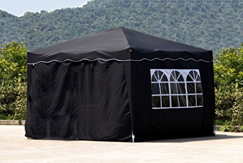 Dieser Pavillon ist super schnell aufgebaut und somit auch für spontane Einsätze perfekt zu gebrauchen. Die vier Wände schützen nicht nur vor der Sonne und Regen, sondern auch vor neugierigen Blicken. Zudem verleiht der Polysterstoff dem Pavillon eine schönere Optik als beispielsweise PE oder PVC.