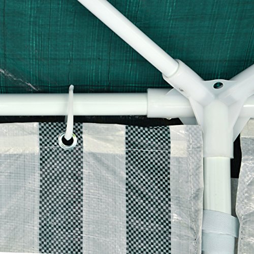 Da es bei Aktivitäten und Festen im Freien dazu kommen kann, dass Wolken aufziehen und etwas Regen fällt, ist es wichtig, dass man einen Unterschlupf hat, um die Party nicht absagen zu müssen. Deshalb ist die PE-Plane (110 g/m²) dieses Pavillons wasserdicht und schützt gut vor kleinen Regenschauern.