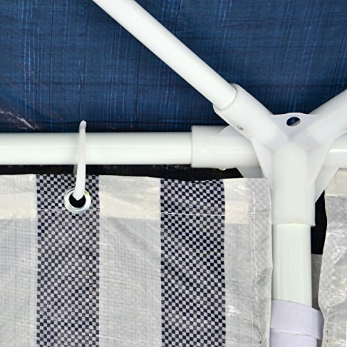 Da es bei Aktivitäten und Festen im Freien dazu kommen kann, dass Wolken aufziehen und etwas Regen fällt, ist es wichtig, dass man einen Unterschlupf hat, um die Party nicht absagen zu müssen. Deshalb ist die PE-Plane (110 g/m²) dieses Pavillons wasserdicht und schützt gut vor kleinen Regenschauern.